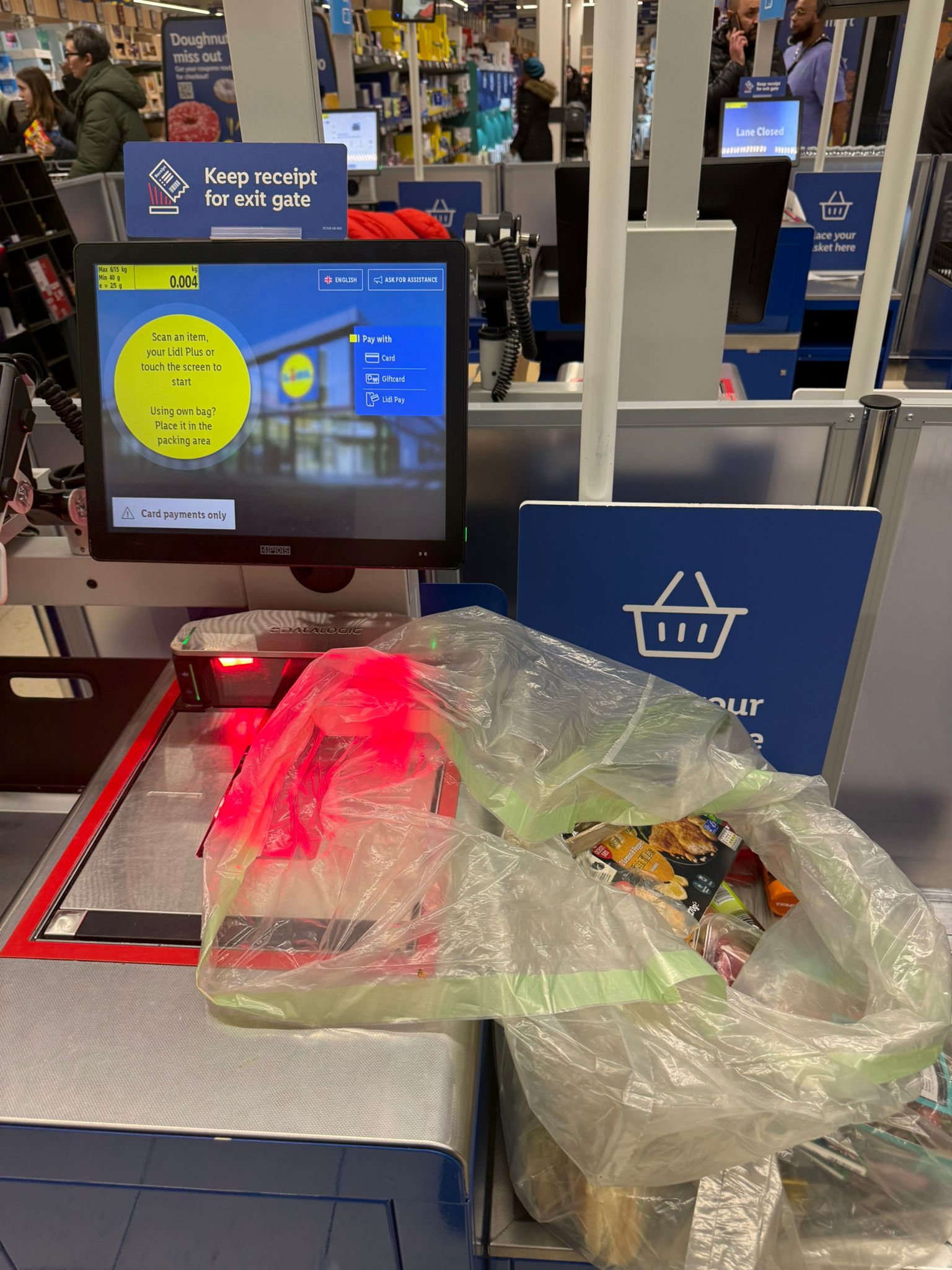 The ongoing issue has been reported at the Lidl branch on Whitehorse Road, CR0 2LG, where staff have been handing out green bin bags to customers at the self-checkout area in place of the standard carrier bags shoppers would normally expect to purchase. Unlike a one-off stock issue, the problem has now persisted across multiple consecutive evenings, suggesting a recurring failure in the store’s stock management rather than an isolated incident.