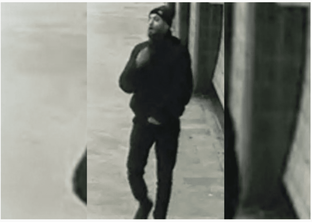 Officers are seeking a man of medium build and height with a short dark beard in connection with the incident. According to police descriptions, the suspect was wearing a black zip-up jacket, black trousers, black shoes, and a black hat which appeared to conceal baldness or short hair.